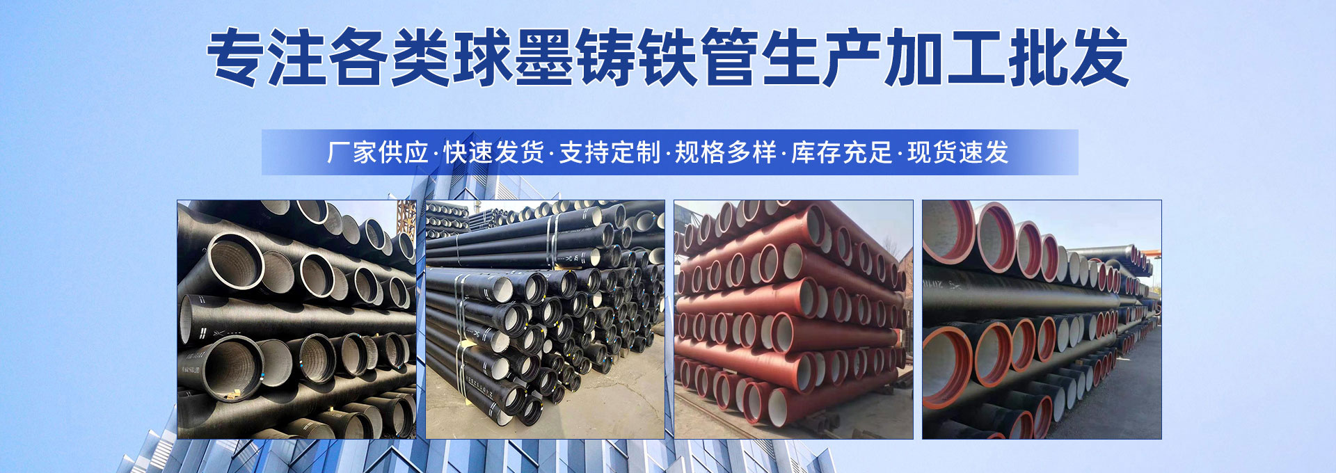 山東鵬瑞管業(yè)有限公司是專(zhuān)業(yè)銷(xiāo)售多種規(guī)格型號(hào)的球墨鑄管企業(yè)。該公司高爐生產(chǎn)的鐵水進(jìn)行自主消化,決定采用高爐中頻爐短流程鑄造工藝,以減少能源消耗和環(huán)境污染,實(shí)現(xiàn)節(jié)能減排,走質(zhì)量發(fā)展的路子。   球墨鑄鐵管采用國(guó)內(nèi)外先進(jìn)的水冷鑄造設(shè)備和最新工藝,確保每根鑄管具有良好的機(jī)械性能和較長(zhǎng)的使用壽命;以精良的設(shè)施裝備,雄厚的技術(shù)力量,科學(xué)先進(jìn)的管理體系為支撐。公司供應(yīng)的離心球墨鑄鐵管及配套管件具有高強(qiáng)度,高延伸率,外觀(guān)平整,抗腐蝕等卓越性能。產(chǎn)品主要用于城市輸水、自來(lái)水、城市管網(wǎng)、消防工程、花園小區(qū)等流體壓力主管道。球墨鑄鐵管規(guī)格(DN100-DN800、K9、K8、K7、C級(jí))。 我公司的產(chǎn)品具有安裝簡(jiǎn)便,強(qiáng)度高,耐腐蝕,免維護(hù),自潔凈等特點(diǎn) 堅(jiān)持 "誠(chéng)信、創(chuàng)新、服務(wù)" 為宗旨,真誠(chéng)為客戶(hù)創(chuàng)價(jià)值!產(chǎn)品廣銷(xiāo)國(guó)內(nèi)外,深受新老客戶(hù)好評(píng)。 為使產(chǎn)品更加符合客戶(hù)需求,公司實(shí)行一套完整標(biāo)準(zhǔn)的售前,售中,售后服務(wù)。公司為客戶(hù)提供定制化服務(wù),定制化。